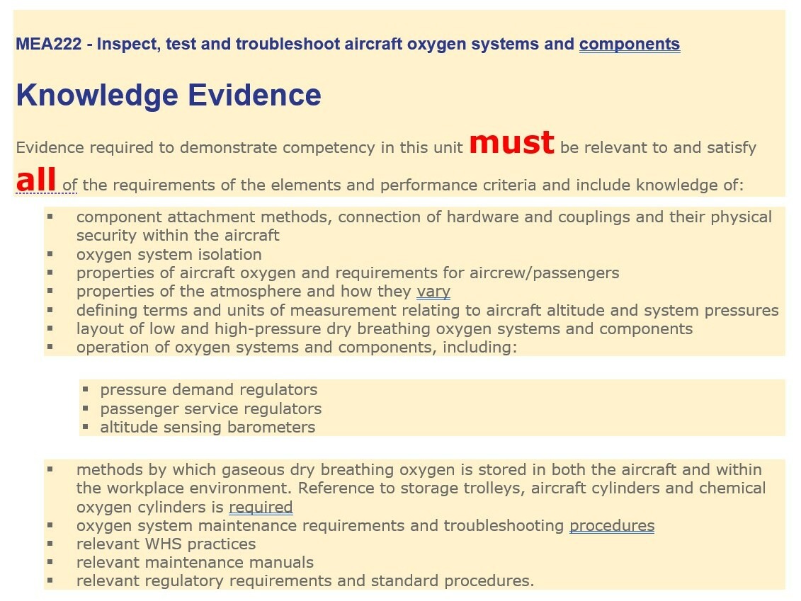 Furthermore, a “grading” system is redundant as far as a Unit of Competency is concerned, as the only possible outcomes are “Competent (C)” and “Not Yet Competent (NYC)”. To underline this point, even if someone achieved 100% in every CASA multiple choice exam, they may still fall short of the knowledge evidence in virtually every unit of competency, as there would be areas of knowledge left unaddressed.